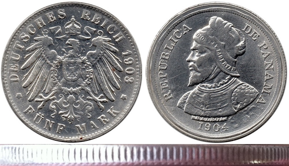 Coin ID : German 5 Mark/Panama 50 Cent Mule