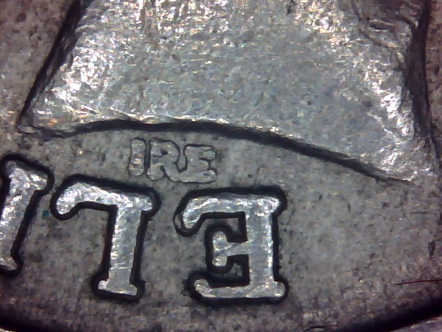 Notes : Slightly different portrait to Forth 13 & Forth 16. See 6v13 & 13v16. Acquired from circulation in March 2014. FORTH 6v2 is a less worn die example. IRE Initials Closeup. | ||
